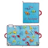 Colorful cloth activity mat features alphabetical animals in lettered pockets. Cotton and tricot with zipper closure and hanging loops for nursery or playroom decor. 17" x 18 1/2".
